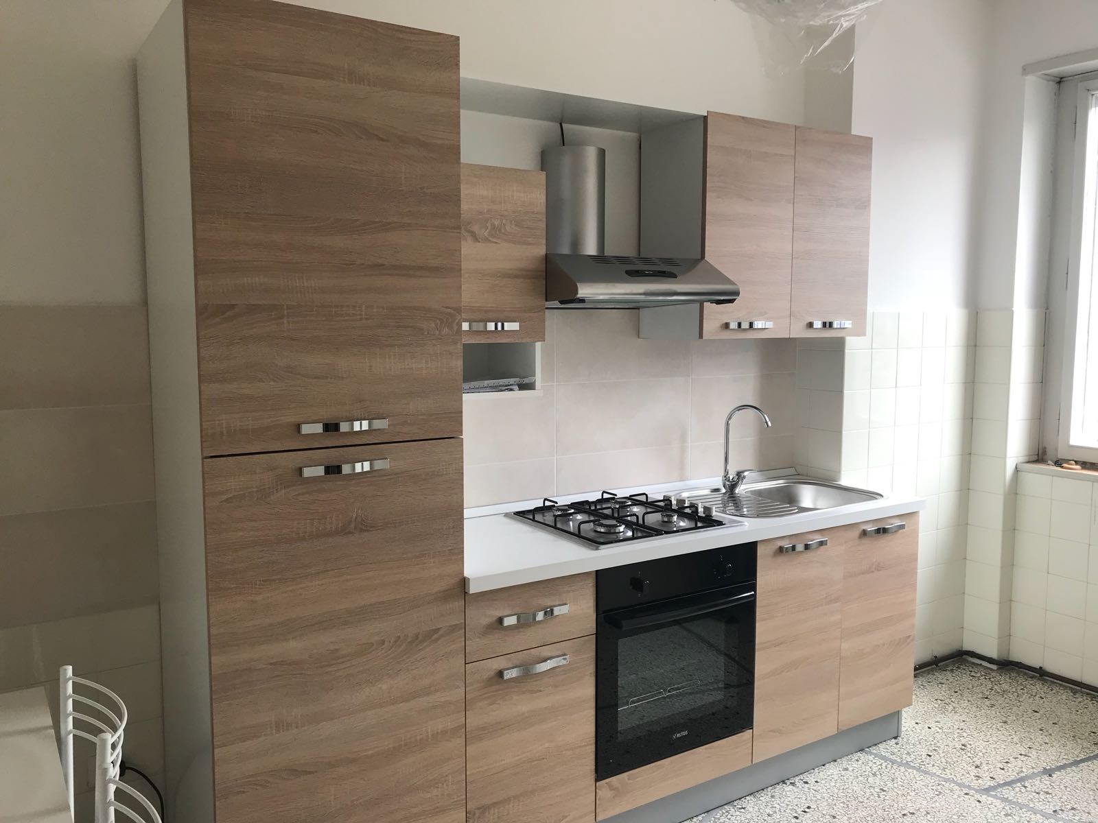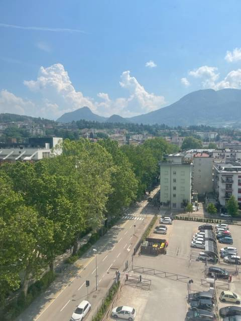 Trento CENTRO difronte la stazione dei treni, appartamento all'ottavo piano con ascensore, composto da ingresso, cucina abitabile, 3 stanze da letto singole, bagno, ripostiglio. Completamente arredato.